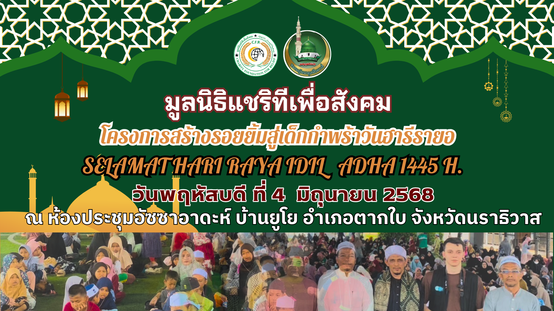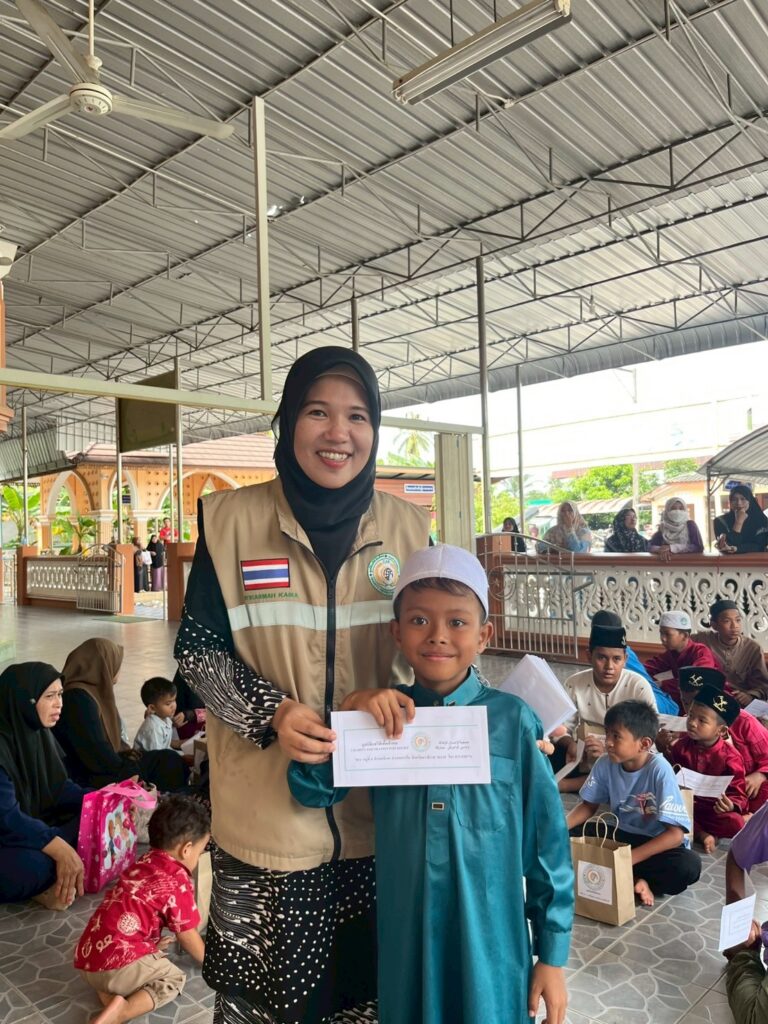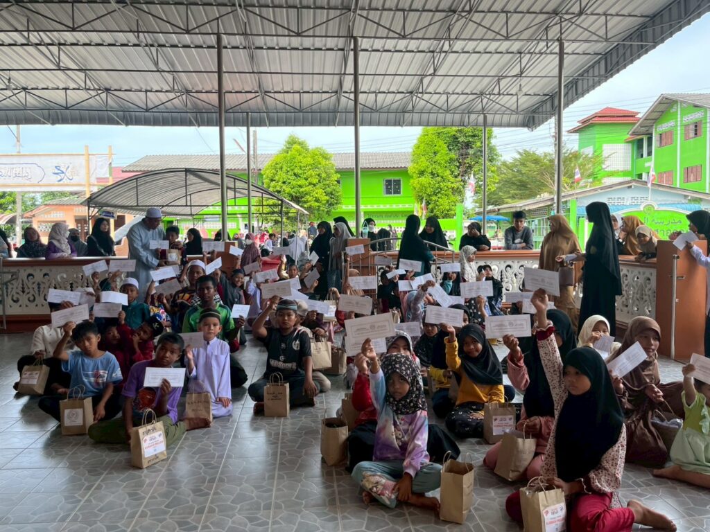 เมื่อวันพฤหัสบดี ที่ 4 มิถุนายน 2568 ทางมูลนิธิฯ ได้มอบซองเงินชุดรายอให้กับเด็กกำพร้าในจังหวัดนราธิวาส เพื่อที่เด็กๆ จะได้สวมใส่เสื้อผ้าชุดสวยๆ ในวันฮารีรายอที่มีความสุข