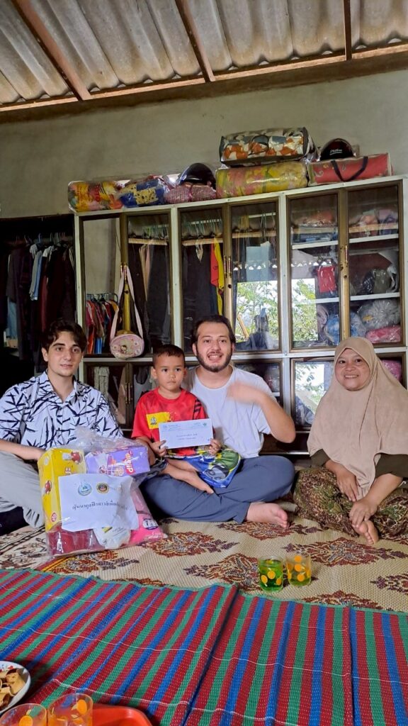 การเดินทางในวันนี้ไม่ได้เป็นเพียงภารกิจ แต่มันคือ“การเดินทางแห่งหัวใจ” ทุกครั้งที่ก้าวเข้าไปในบ้านของแต่ละครอบครัว เราได้เห็นภาพของความเรียบง่าย แววตาใสซื่อของน้อง ๆ ที่เปล่งประกายด้วยความดีใจ เสียงหัวเราะที่แม้จะเบา แต่กลับดังที่สุดในหัวใจของเรา น้อง ๆ หลายคนรีบวิ่งออกมาต้อนรับ บางคนยืนยิ้มอย่างเก้อเขิน บางคนกุมมือเราแน่นราวกับอยากบอกว่า “ขอบคุณที่ไม่ลืมกัน” สำหรับครอบครัวของพวกเขา การสนับสนุนรายเดือนอาจดูเป็นเพียงตัวเลข แต่แท้จริงแล้วมันคือความมั่นคงเล็กๆ ที่ช่วยให้พวกเขาก้าวผ่านวันเวลาที่ยากลำบาก แขกจากตุรกีได้แบ่งปันความรู้สึกด้วยน้ำเสียงอบอุ่นว่า “แม้เราจะมาจากต่างประเทศ ต่างภาษา แต่หัวใจของเรากลับเต้นไปในจังหวะเดียวกัน…จังหวะของความเมตตา” เมื่อภารกิจในแต่ละบ้านสิ้นสุดลง เรามองเห็นรอยยิ้มของผู้ร่วมทางทุกคน มันไม่ใช่รอยยิ้มที่เกิดจากความสุขชั่วคราว แต่เป็นรอยยิ้มที่มาจากการได้รู้ว่า วันนี้… เราได้เป็นเหตุผลให้ใครบางคนมีกำลังใจที่จะสู้ต่อ เพราะการให้ ไม่ใช่แค่สิ่งของหรือเงินทอง แต่คือการมอบหัวใจของเราให้กับอีกหัวใจหนึ่ง “อัลฮัมดูลิลลาฮ”